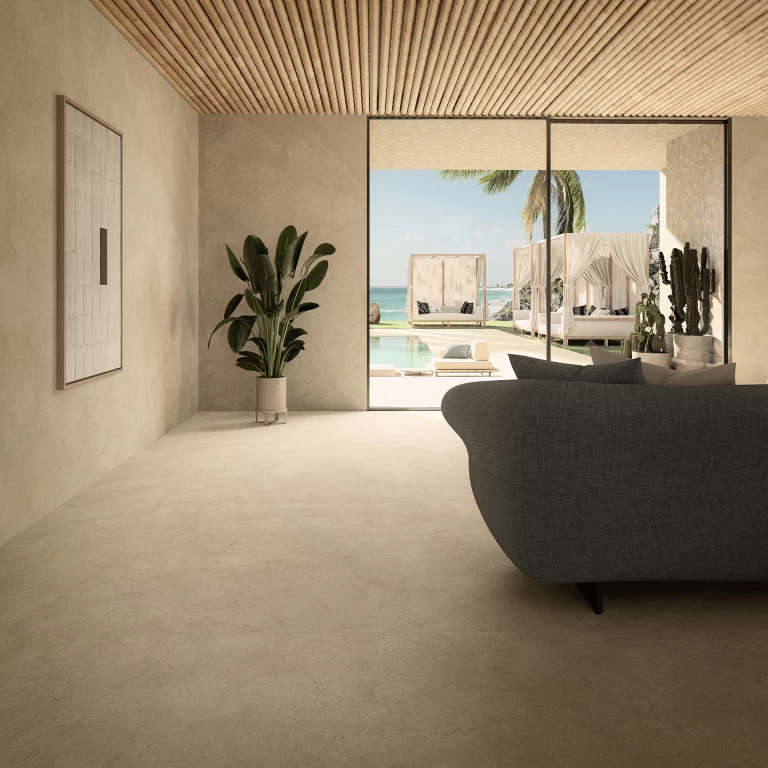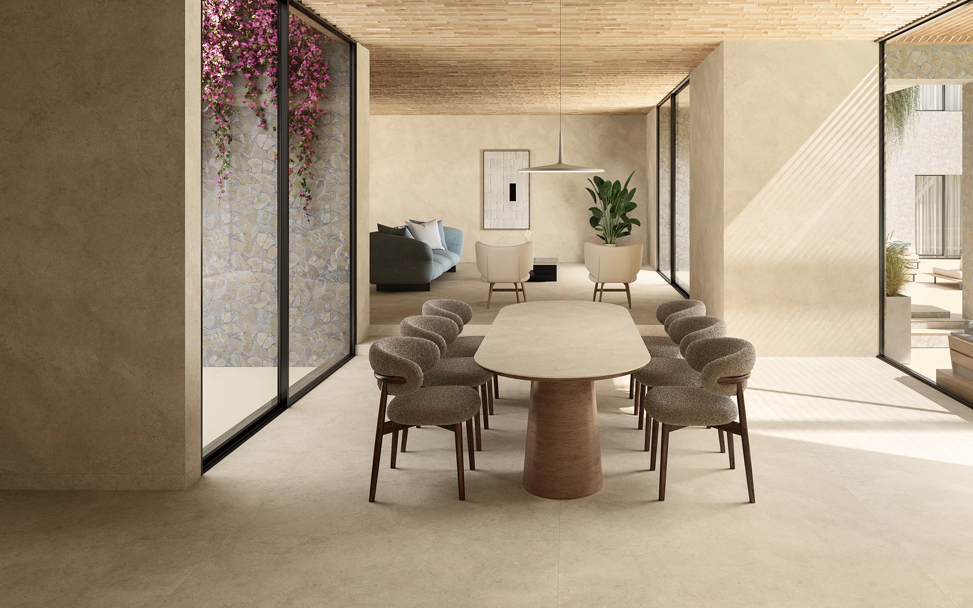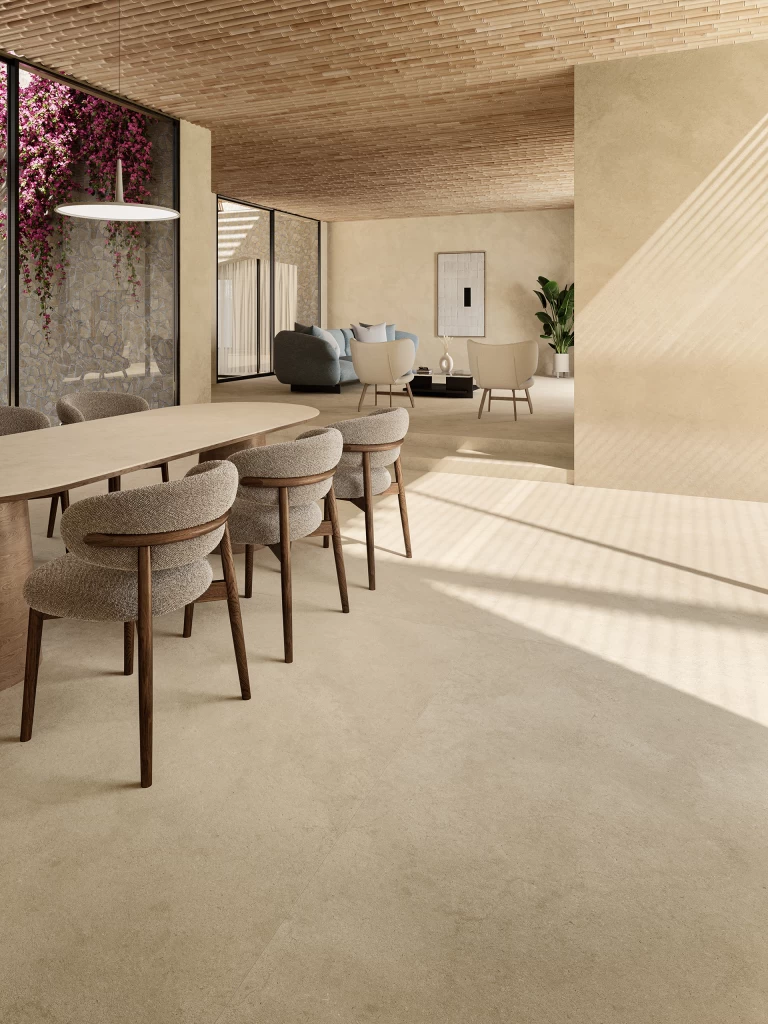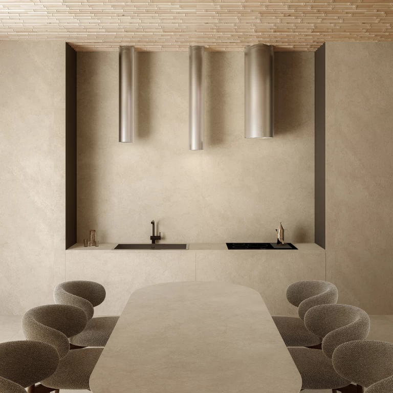 On the understated patterning of the Boost Icor ceramic slab, the DUNE shade offers a sand colour, with all the warm tones of this material. This slab combines subtle contrasts with sedimentary features, enhancing its extremely fine-grained graphic design. Perfect for a modern, elegant solution, with a touch of natural warmth.